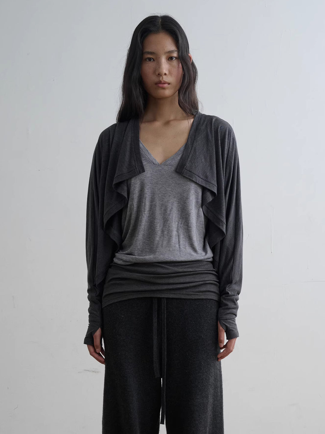 Dolman Sleeve Open Cardigan - Grey