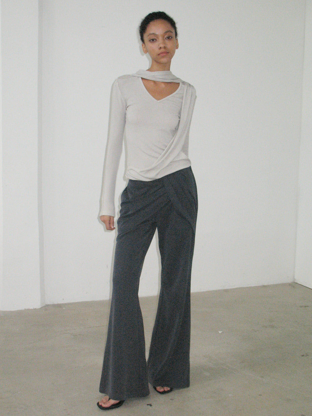 Cowl Neck Knit Top - Grey