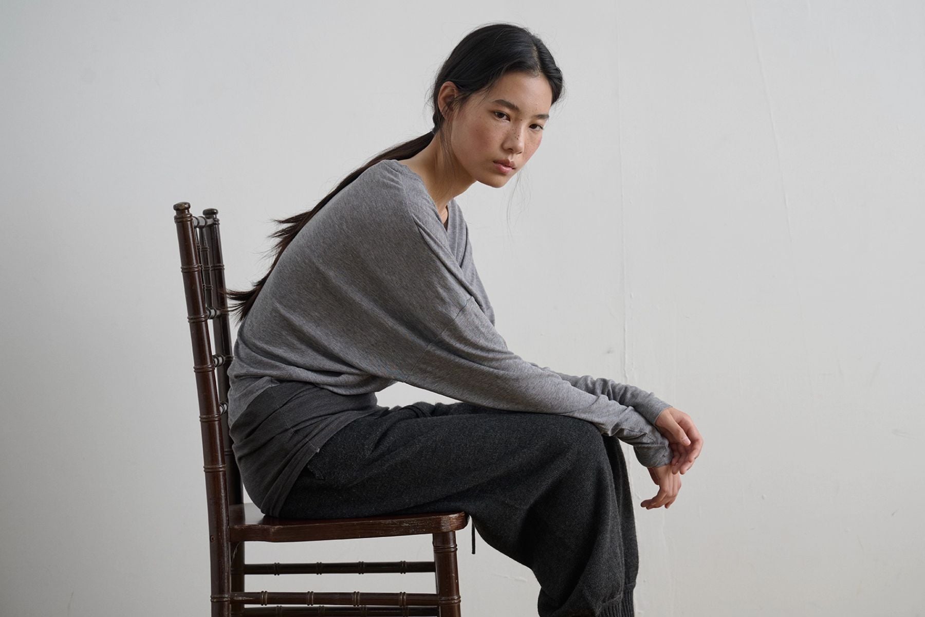Contrast Waist Top - Grey