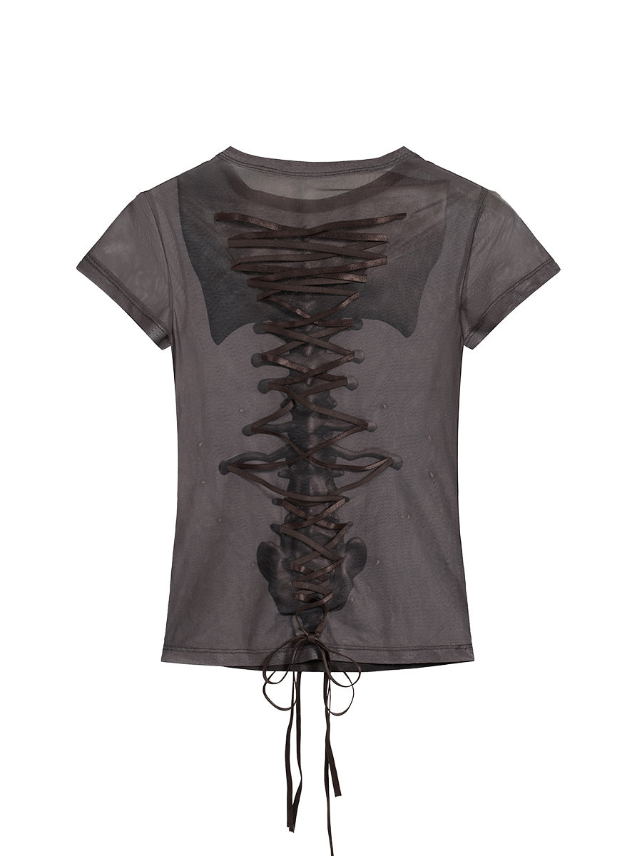 Lace Up Heart Top - Brown