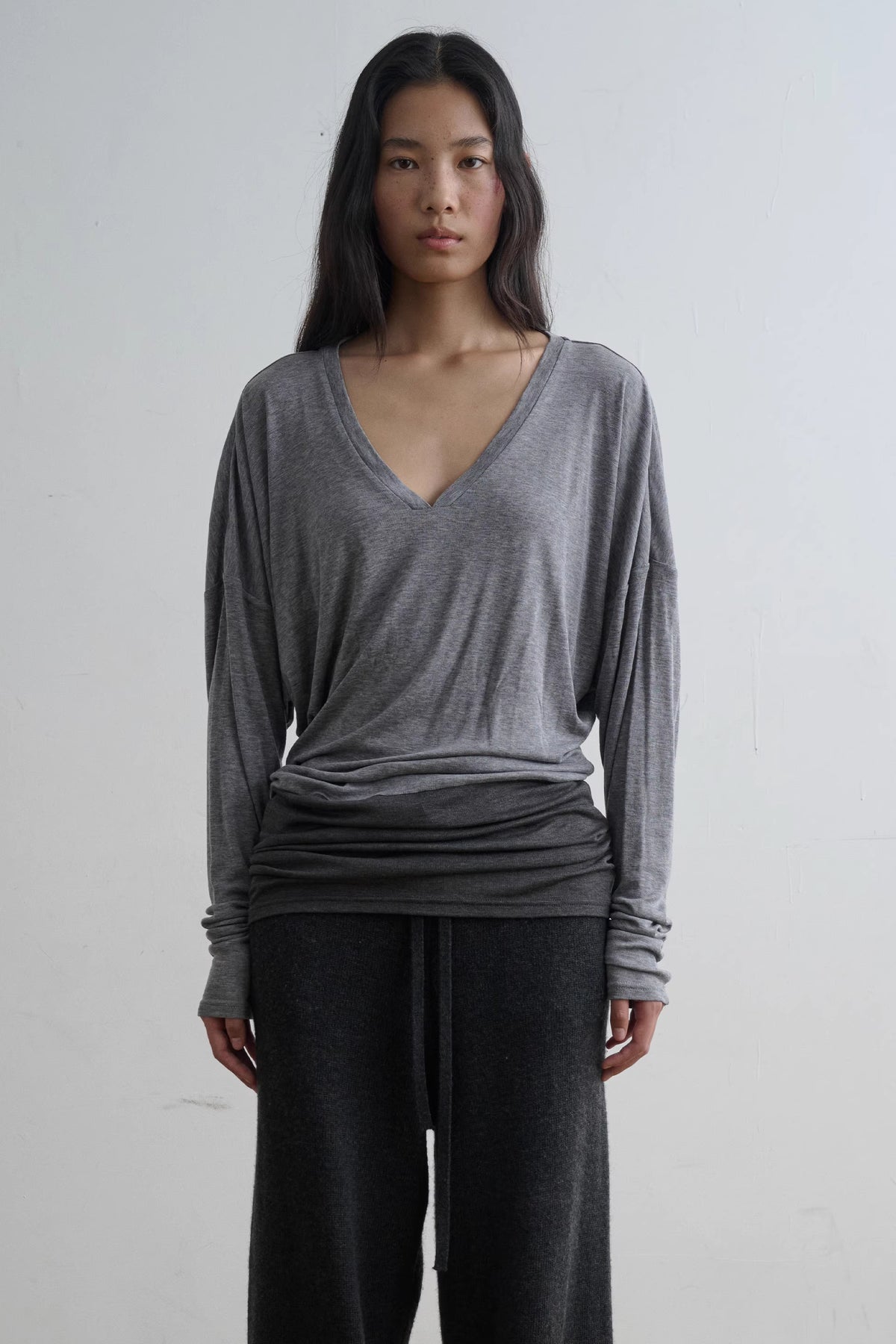 • Relaxed v-neck