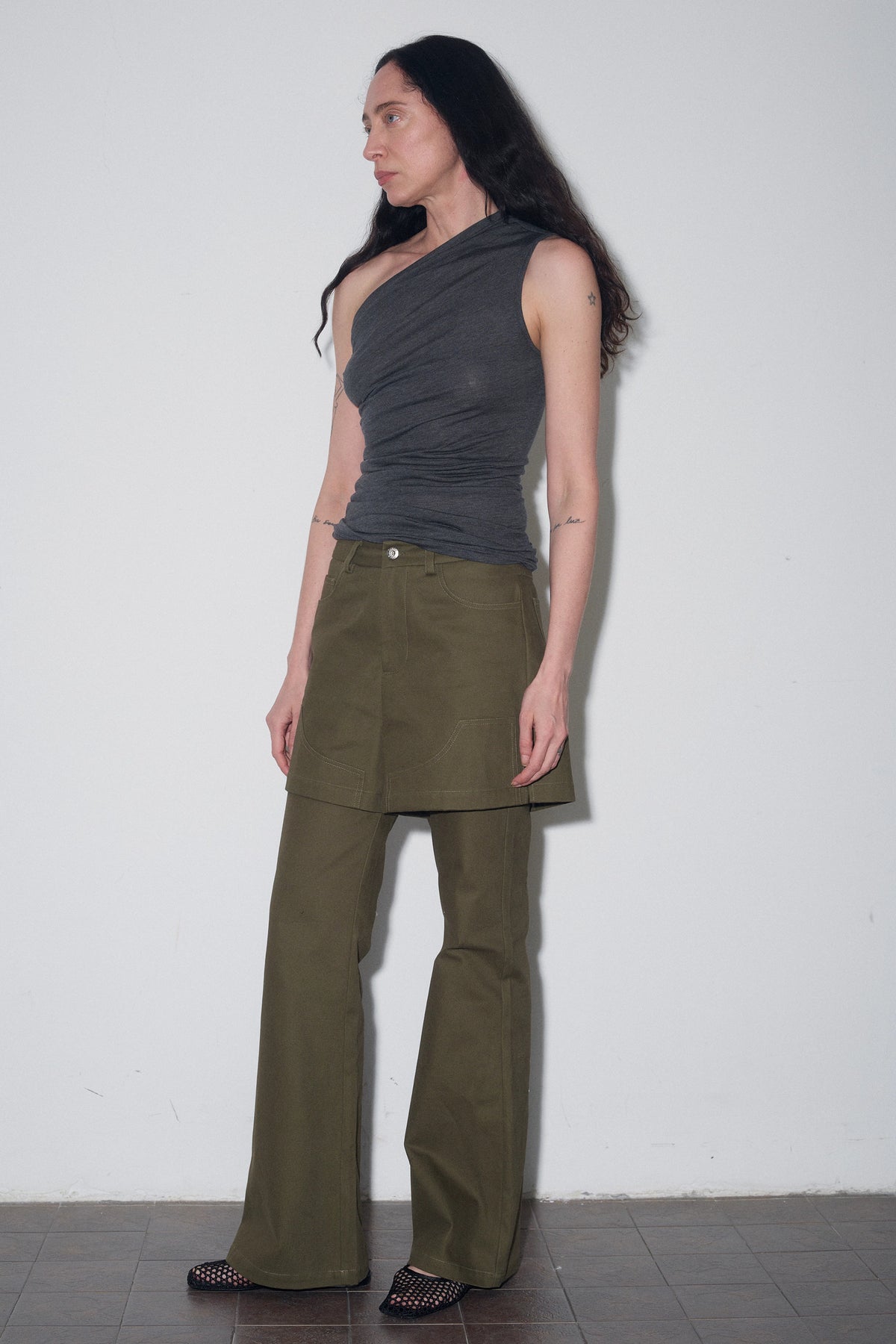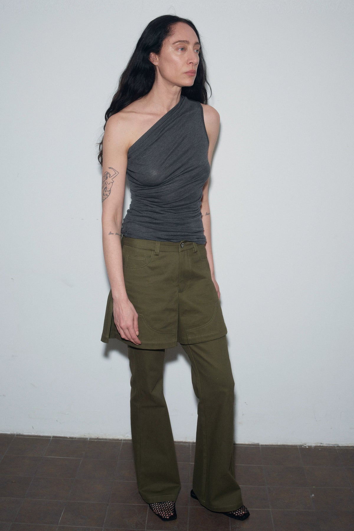 One Shoulder Tank Top - Dark Grey